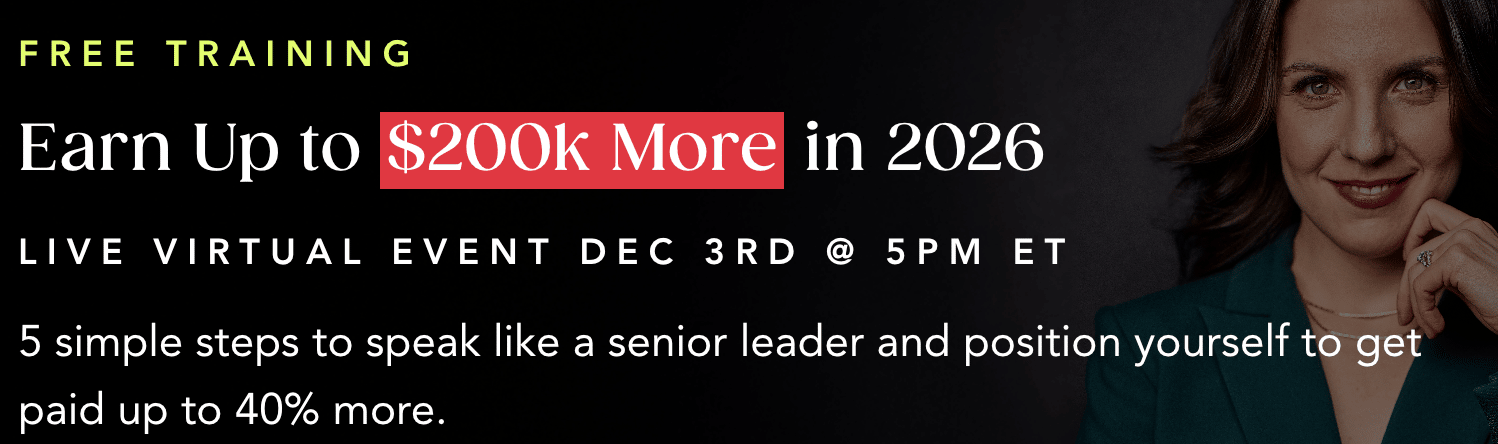 That's exactly why I created my free live training: Earn Up to $200K More in 2026: 5 Steps to Speak Like a Senior Leader